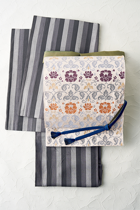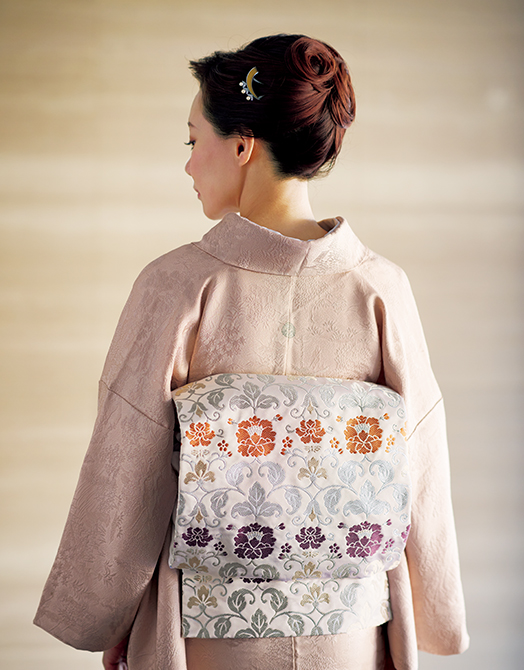 敢えて色数を抑えて織り出し、幅広い個性のきものと合わせてお楽しみいただける帯に仕上げました。