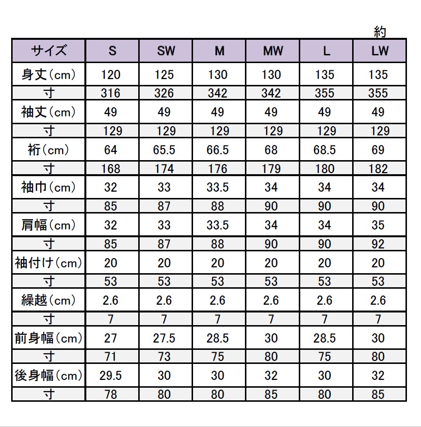 S、SW 、M 、MW 、L 、LWの6サイズ展開。